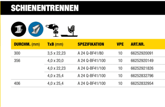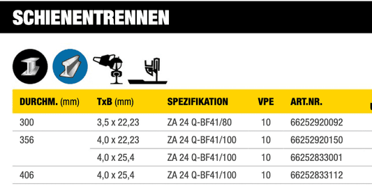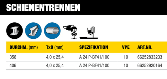 Flexovit Trennscheiben für Schienentrennen Härtegrad: Weich 10 Stück